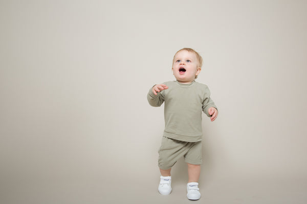 Featuring a relaxed drop crotch silhouette with an elastic waist and charming rolled hem, these shorts are designed with plenty of growing room for your little one. The generous fit pairs beautifully with every piece in the lola + beau collection, making them endlessly mixable for effortless styling. Crafted from soft 100% cotton with built-in stretch, they're made to grow with your bub and last through all the adventures ahead. Available in timeless Olive Green and Beige, sizes Newborn to 24 months. Our signature fit runs slightly generous to ensure longevity.